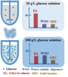 生物质化工团队在生物质催化转化制备能源化学品乙酰丙酸酯方面持续开展了近十年的应用基础研究,创建了纤维素/半纤维素及其糖单元催化醇解定向制备乙酰丙酸酯的系列理论及技术体系,先后获得4项国家自然科学基金项目的资助,相关成果在国际权威SCI期刊发表学术论文30余篇,总被引用1500余次,成套技术实现吨级规模中试生产。目前生物质基乙酰丙酸酯的制备仍存在原料利用率低、能耗高等瓶颈问题,生产成本无法完全与石油基化学品相竞争。高底物浓度反应无疑是解决上述问题的契机,有望全面提升生产过程效益,利于工业化生产。