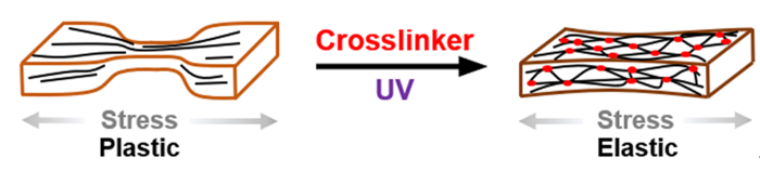 电子材料的弹性化为可穿戴设备领域带来了新的机遇。铁电体类似于半导体和电极,是可穿戴电子产品中的关键材料。但可穿戴设备的发展需要铁电体在内的这些电子材料能够承受大幅(达到50~80%)且频繁的应变,同时要求其保持良好的电学性能。因此,铁电材料的弹性化成为一个极具前景的方向。与经典铁电体类似,弛豫铁电体表现出多功能性,包括热释电性、压电性和介电性等,为开发和应用为高性能驱动器和传感器提供了广阔的前景。然而,无机弛豫铁电体表现出脆性,而有机弛豫铁电性表现出塑性,均无弹性。弛豫铁电体作为现代电子设备中的关键材料,这一问题将限制了它们在柔弹性电子产品中的应用。中国科星力宁波材料技术与工程研究所李润伟研究员和胡本林研究员首次提出了“弹性铁电体”的概念(Science, 2023, 381: 540–544),通过精准微交联实现了铁电体结晶度和回弹性之间的微妙平衡。然而,该本征弹性铁电体的实现条件需要高温热交联,在一定程度上限制了弹性铁电材料的应用前景。