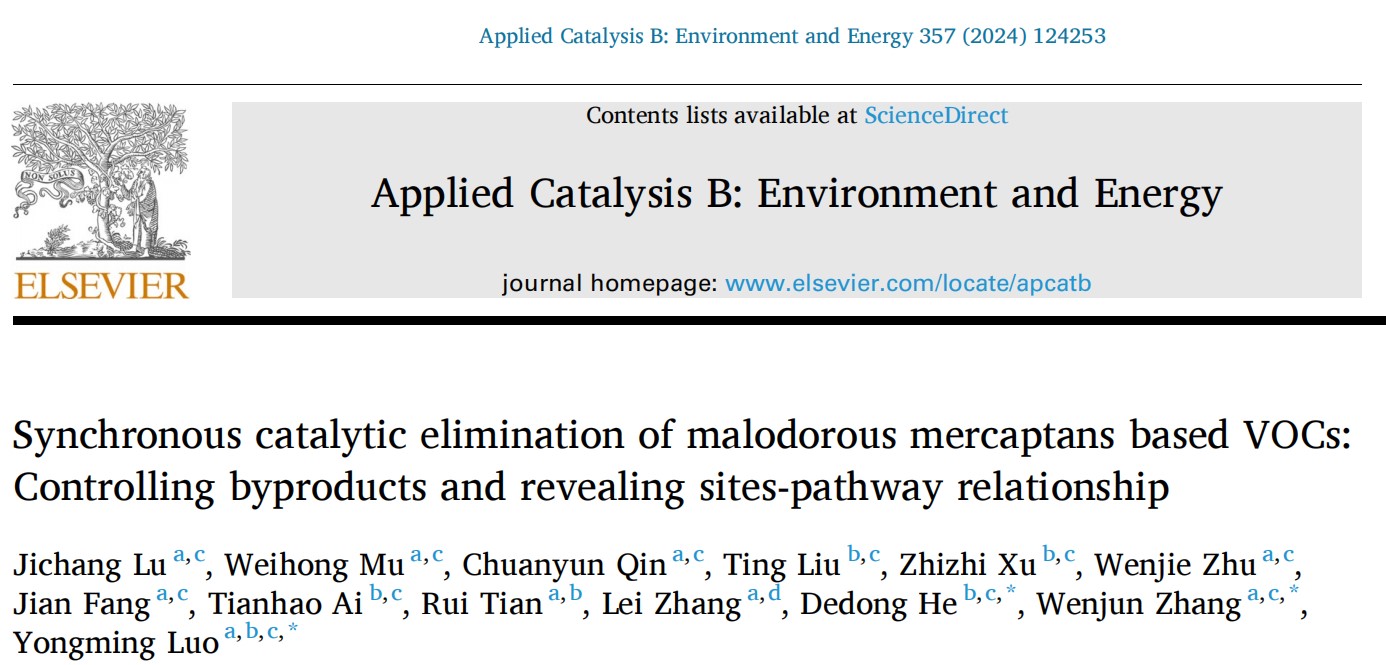 先进环境功能材料创新团队在恶臭含硫挥发性有机物(VOCs)污染控制方面取得重要研究进展,相关研究成果以“Synchronous catalytic elimination of malodorous mercaptans based VOCs: Controlling byproducts and revealing sites-pathway relationship”为题发表在环境催化领域顶级学术期刊Applied Catalysis B: Environment and Energy(IF=22.1)上。我院何德东教授和罗永明教授为论文共同通讯作者。