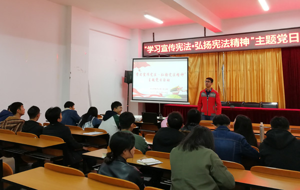 学生第三党支部在化工楼负一楼报告厅开展“学习宣传宪法·弘扬宪法精神”活动,活动由支部书记袁敬老师主持,全体党员参加。