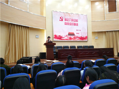 会上,金雯老师介绍了此次会议的主要流程,并结合《中国共产党发展党员工作细则》对入党申请人列为入党积极分子流程进行了详细的讲解。随后由经过群团组织推优,且条件合格的11名入党申请人顺序上台,结合本人实际情况,主动详实的进行入党申请人PPT风采展示环节,阐述自己的入党动机、思想动态、对党的认识及今后目标计划等,表明了对加入中国共产党的意愿。