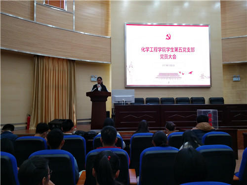学生第五党支部于化工楼100报告厅召开了党员大会进行支委换届选举。会议由金雯老师主持,全体正式党员、预备党员和入党积极分子参加了此次会议。