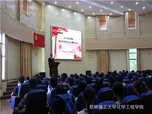 于化工楼报告厅召开七一党内表彰暨庆祝建党九十六周年大会。院党委齐毅书记、梅毅院长、全体师生党员参会,院党委李云燕副书记主持会议。