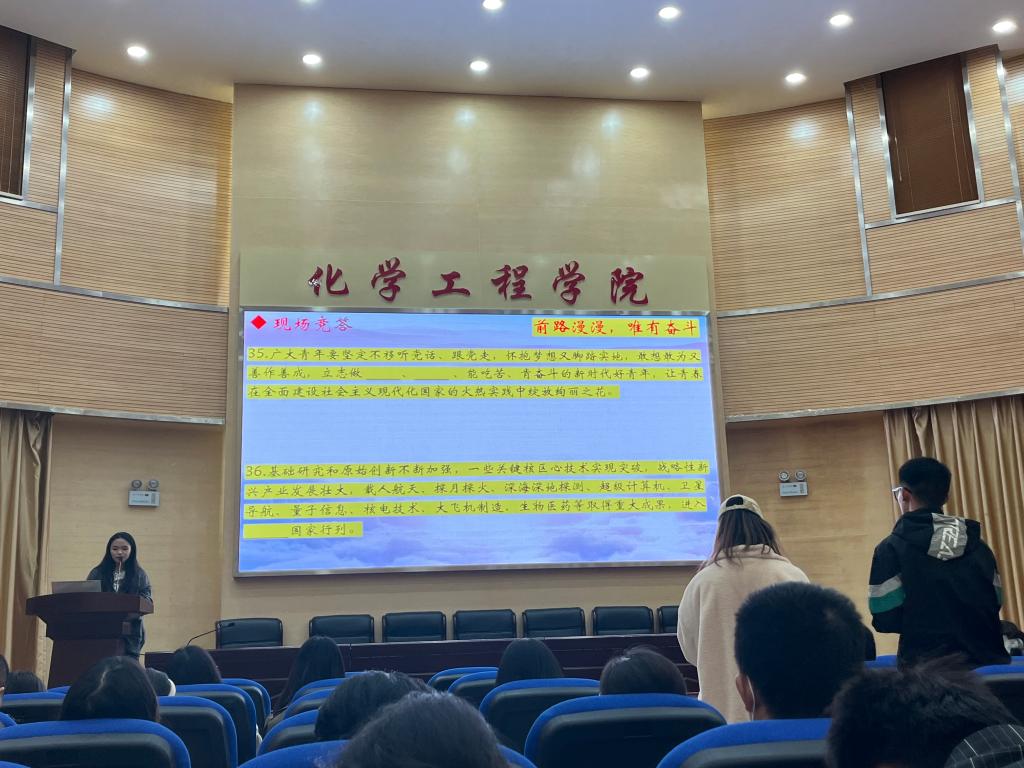 2022年11月22日下午19:00时,学生第二党支部在化工楼100报告厅开展了“学思践悟二十大、砥砺奋进新征程”主题党日活动。本次会议由刘梦萍同志主持,支部全体党员同志、积极分子参加了本次活动。