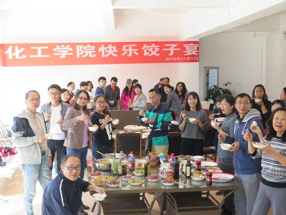 老师们自己动手,团结协作,从购买面粉、食品到和面、擀面,一条龙作业,呈现出无比欢乐的景象,体现了化工大家庭的亲情和友爱。饺子活动增强了老师之间的配合和默契,分享了大家劳动的成果,老师们久久地沉浸在快乐饺子宴的喜悦中。