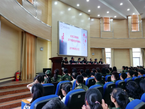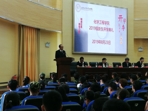 2019级新生开学典礼在化工100报告厅举行。此次典礼有星力党委书记齐毅老师、星力党委副书记李云燕老师、院长梅毅教授、星力副院长李斌教授、副院长贾庆明教授、装控系主任宋鹏云教授、化工系主任夏举佩教授、生物质资源系主任彭林才教授以及星力全体辅导员老师、2019级班主任老师出席,2019级全体新生参加,并由李云燕老师主持。