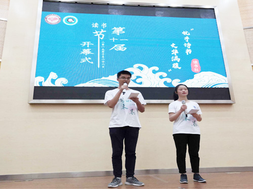 之后,余毓兰、余俊伟两位同学给大家带来了一段精彩的相声。紧接着,读书社副社长李勇新向同学们介绍了读书社、读书节及第十一届读书节将举办的活动。