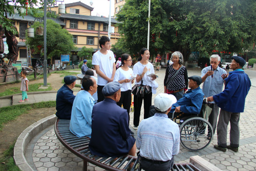 下午16:00,暑期三下乡社会实践团队来到屏边县小广场,各组分别按照自己的子项目课题对周边村民进行了采访,了解村民们的基本情况及屏边目前的县情。晚上19:00,同学们就各组调研内容进行分享,随后各项目指导老师提出指导意见。