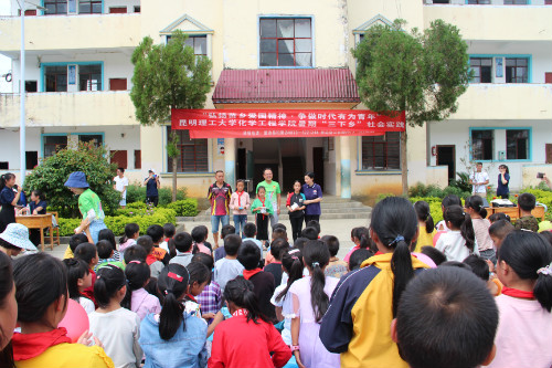 党委副书记李云燕老师、水田希望小学校长为他们颁发了奖品;最后一首由我院同学演唱的《中国话》将活动带入尾声,活动结束后,屏边县团委领导、我院领导老师及三下乡队员和水田希望小学全体师生进行了合影留念。