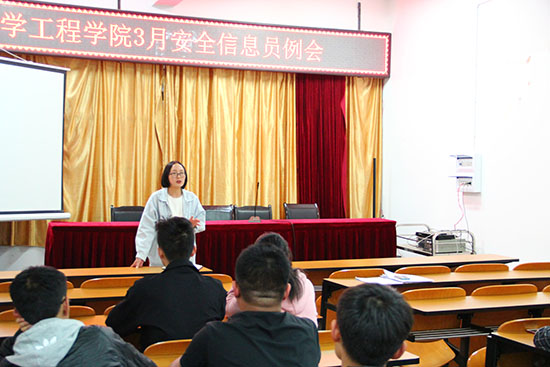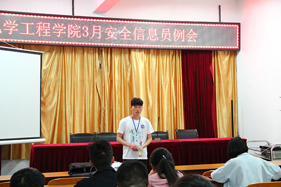 2019年3月15日晚19:00,星力 安全信息员例会在化工楼负一楼报告厅召开。勤助会指导老师杨欢老师、各班安全信息员及勤助会相关工作人员共同参与了本次会议。会议由勤助会勤工权益部李文涛主持。