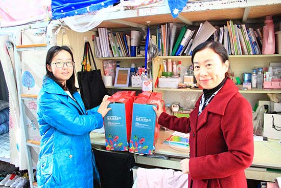 活动开始,勤助会工作人员与老师合影。随后一同将毛毯送到2018级贫困生宿舍,整个过程老师们脸上挂满了喜悦之情,丝毫没有爬楼的劳累。经过一个半小时的紧张忙碌,上午9:30左右活动圆满结束。