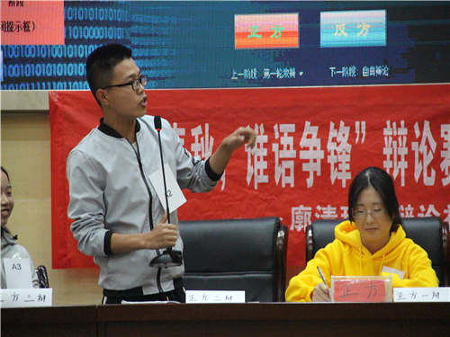 然后依次进行5场辩题分别为“爱情是自私的/无私的”、“物质追求/精神需求哪一个更重要”、“法律容情/不容情”、“女性/男性谁更需要关怀、”“自扫门前雪是可取/不可取”的辩论。比赛期间辩手们舌灿莲花,现场气氛高潮迭起。最后王子豪、张英、张济元、张云波、付和成五位同学获得最佳辩手荣誉称号,装控182,化工181等5支队伍优胜。