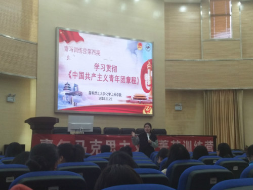 2018年11月22日13:30,星力 团委、学生会在化工楼100报告厅举行了第四期青年马克思主义训练营“我的团章我主讲”翻转课堂活动。本次活动有星力 团委李凯宇老师出席,星力 团委、学生会全体成员及青马训练营全体成员参加,并由院团委副书记彭芳同学主持。