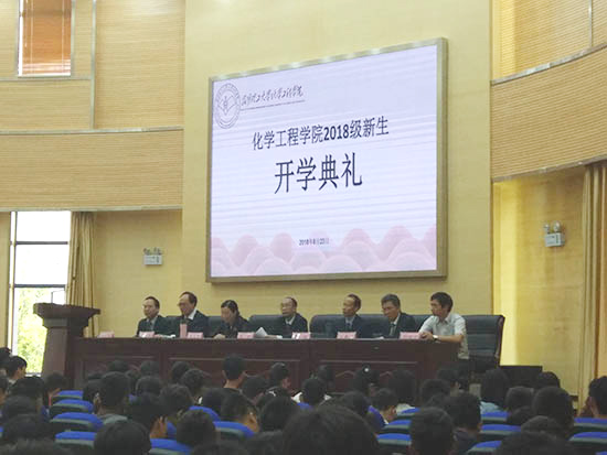 2018级新生开学典礼在化工楼100报告厅举行。此次典礼由党委副书记李云燕老师主持,出席本次典礼的有星力党委书记齐毅老师、副院长李斌老师、各系主任、2018级班主任及各级辅导员。