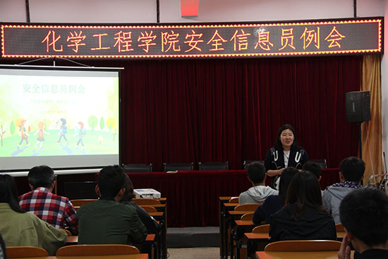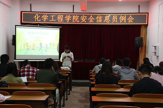 安全信息员例会在化工楼负一楼报告厅召开。勤助会指导老师李凯宇老师、各班安全信息员及勤助会相关工作人员共同参与了本次会议。