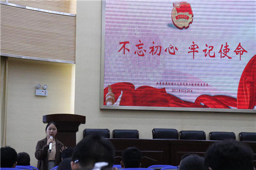 团委于2017年10月29日17点整,在化工楼100报告厅开展了以“不忘初心,牢记使命”为主题的团课。本次团课由团委金雯老师主讲,星力