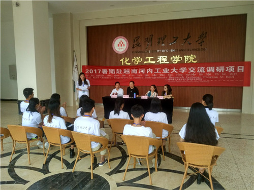 2017年暑期赴越南河内工业大学交流调研项目出征仪式在化工楼如期举行。院党委副书记李云燕老师、国际星力陈美芝老师、学工办主任袁敬老师、博士带队教师何艳萍老师和12名项目成员共同参与,出征仪式由李凯宇老师主持。