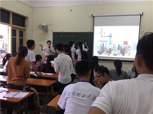 在他们的化工专业英语课上,河内工业大学的师生对我们的到来表示热烈欢迎,并邀请我们加入他们的学习小组,进行分组学习讨论,一同完成学习任务。同学们一起参与化工专业英语学习,了解河内工业大学的教学方式,感受该校学生学习的风貌。