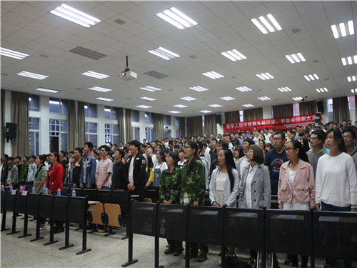 第四项议程星力学生会主席赵茁森发言,主席代表第九届团委、学生会对新生们做团委、学生会的工作汇报,从组织建设、科技与创新创业、学生维权、文体活动四个方面总结第八届团学工作。第五项议程各部门展示,各部门的部长们在讲台上为同学们介绍了自己部门的特色,从团委、学生会、“青韵化蝶”舞蹈队到青年志愿者协会,各具特色的讲述让同学们早已心有所属,低头认真的填写报名表。并按照大屏幕示意图将报名表交至指定的地方等待紧张的初试环节。随着初试的完成本次招新大会顺利结束。
