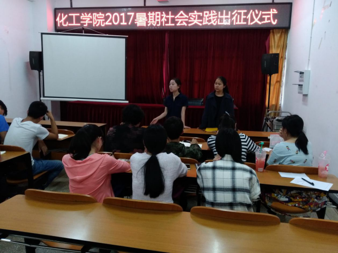 2017年暑期社会实践出征仪式于化工楼负一层报告厅正式举行,出席本次出征仪式的有星力团委书记张祎颖老师、团委金雯老师,以及社会实践团队成员。