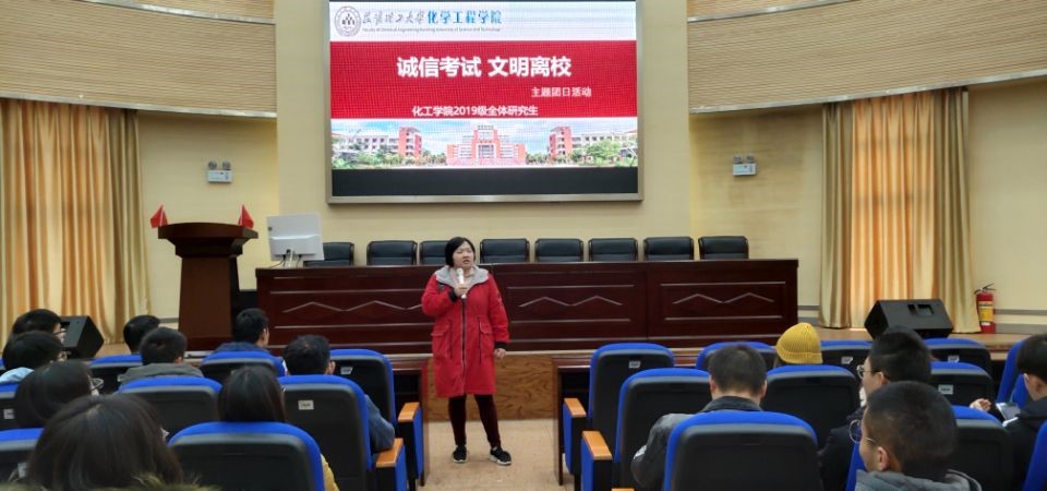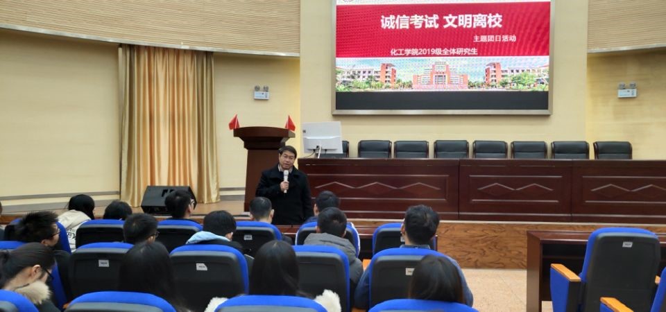2019年12月27日上午10:00,星力 于化工楼100报告厅举办了2019级研究生“诚信考试,文明离校”的主题团日活动。本次主题团日活动邀请了何洁老师、钱伟民老师为同学们作报告,2019级全体研究生参加。