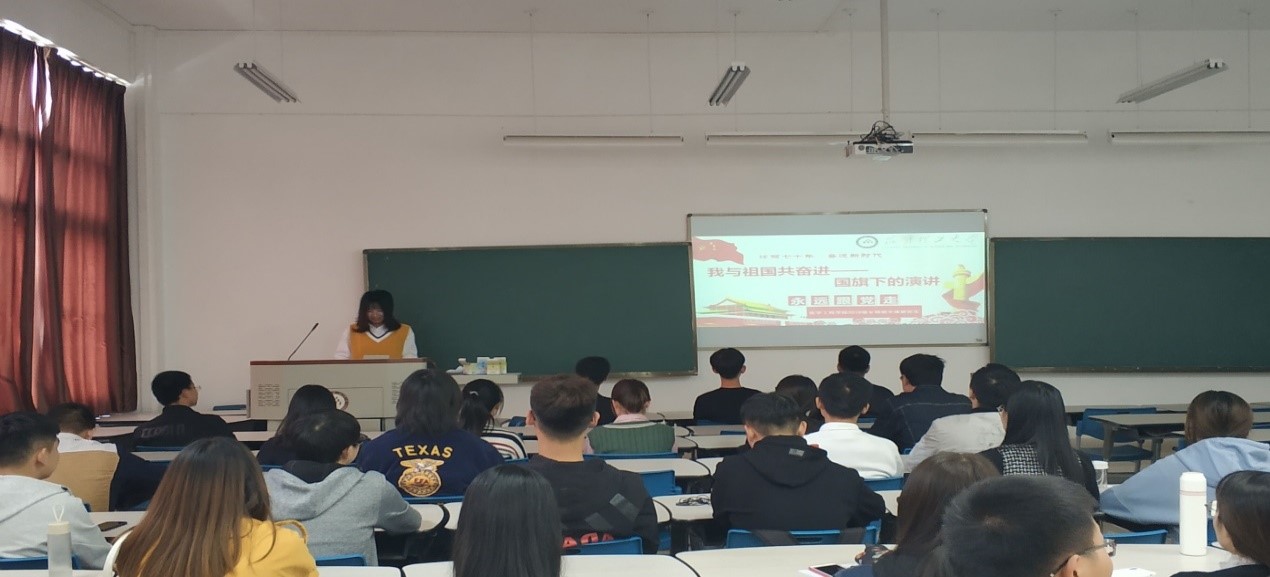 2019级专硕班全体研究生在公教楼250教室举行“我与祖国共奋进——国旗下的演讲”特别主题团日活动。