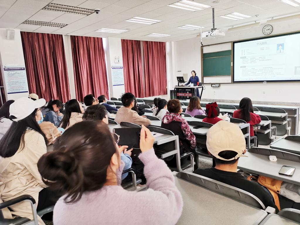 任子薇校友分享了自己的成长历程,鼓励学弟学妹们勇于追梦,勤于圆梦。随后,讲解了简历的制作与优化,着重讲解了公务员事业单位面试、考研面试、求职面试的礼仪和要点,还与到场同学们面对面交流,答疑解惑。