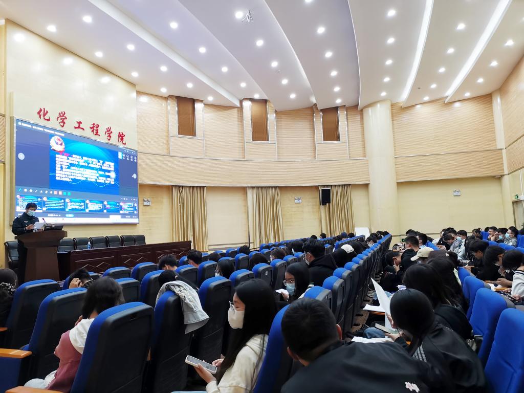 党委副书记宁玲主持,学工办主任袁敬及化工院200余名学生干部现场参与学习,其余全体本科生通过线上直播的形式参与学习。