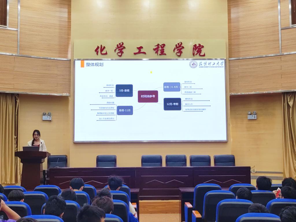 随后,2021级保研和考研成功的李昕芮、郜思杭、朱伟伟3位同学三位同学依次上台,结合自身经历分享 “独家攻略”,为同学们分享了科研竞赛经历、考研备考方法、考研心态调整与压力管理、个人经验总结与建议、就业目标选择等,还特别强调 “就业与考研并非单选题”,建议根据个人职业目标选择路径。