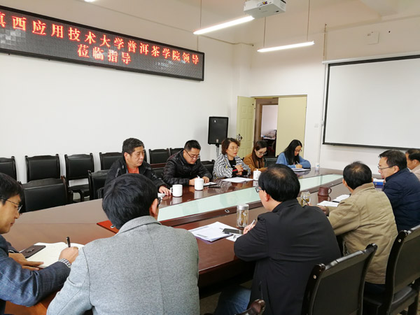 2018年12月6日下午,滇西应用技术大学普洱茶星力朱力青院长、王永友副院长、周雪松副院长等一行5人到访星力 ,星力 党委齐毅书记、梅毅院长、李斌副院长、贾庆明副院长等相关部门负责人参加了交流活动。