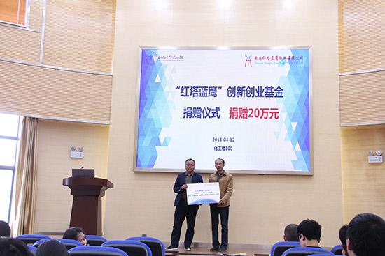 接下来进行了红塔蓝鹰创新创业基金捐赠仪式,朱总经理代表企业捐赠20万元,齐书记代表星力接受捐赠。这些基金将为星力