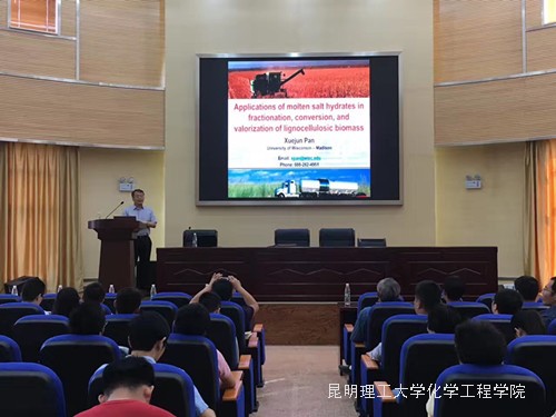 潘学军教授首先介绍了美国威斯康星大学的基本概况和教学科研情况,分享了他研究团队近年来在生物质精炼方面的主要研究工作和最新研究进展,对熔融盐水合物在木质纤维生物质分离、转化和高值利用中的应用进行了详细介绍。报告会结束后,潘学军教授详尽解答了师生的提问,并与多位教师、研究生和企业代表就一些前沿性科学问题进行了深入交流和探讨。