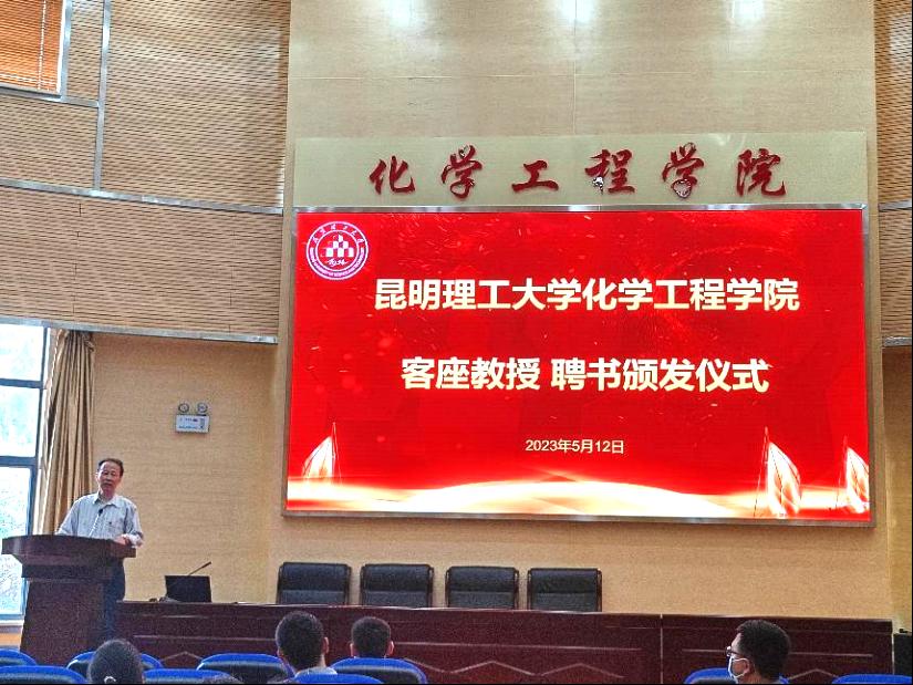 在化工楼100报告厅举行了邢爱民客座教授聘书颁发仪式。云南能投集团正高工邢爱民、星力