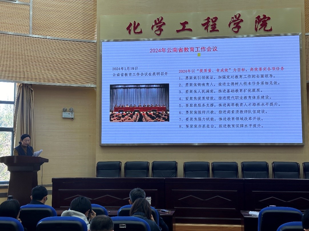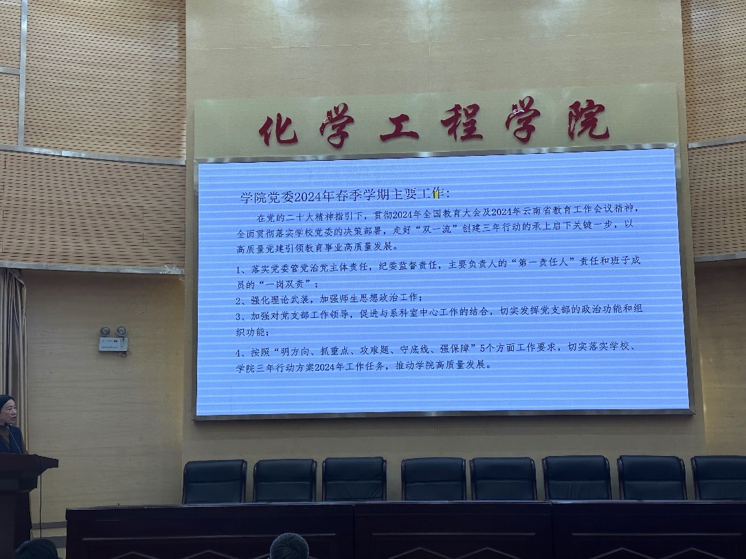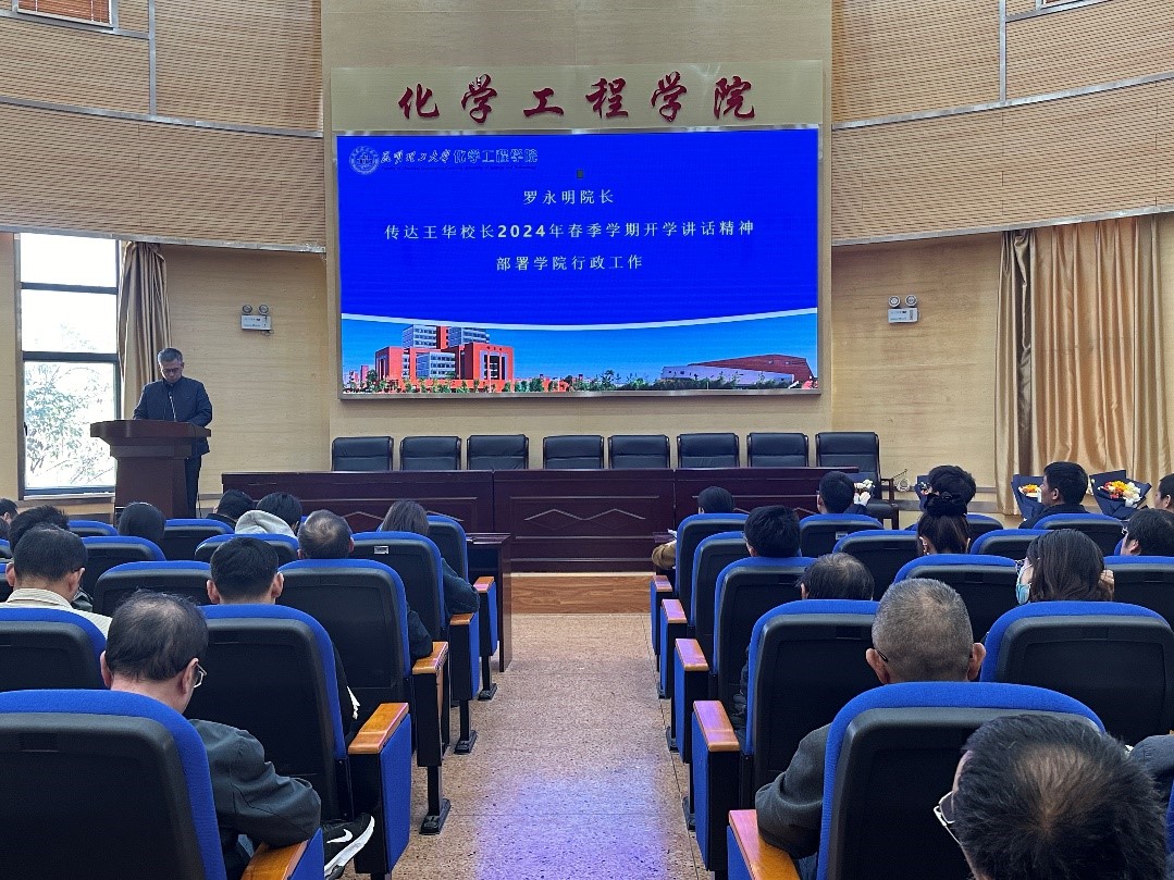 在化工楼100报告厅召开2024年春季学期全院大会,学习唐家华书记、王华校长在2024年春季开学中层干部会议上的讲话,研究部署新学期重点工作。本次会议由党委书记李云燕主持,星力