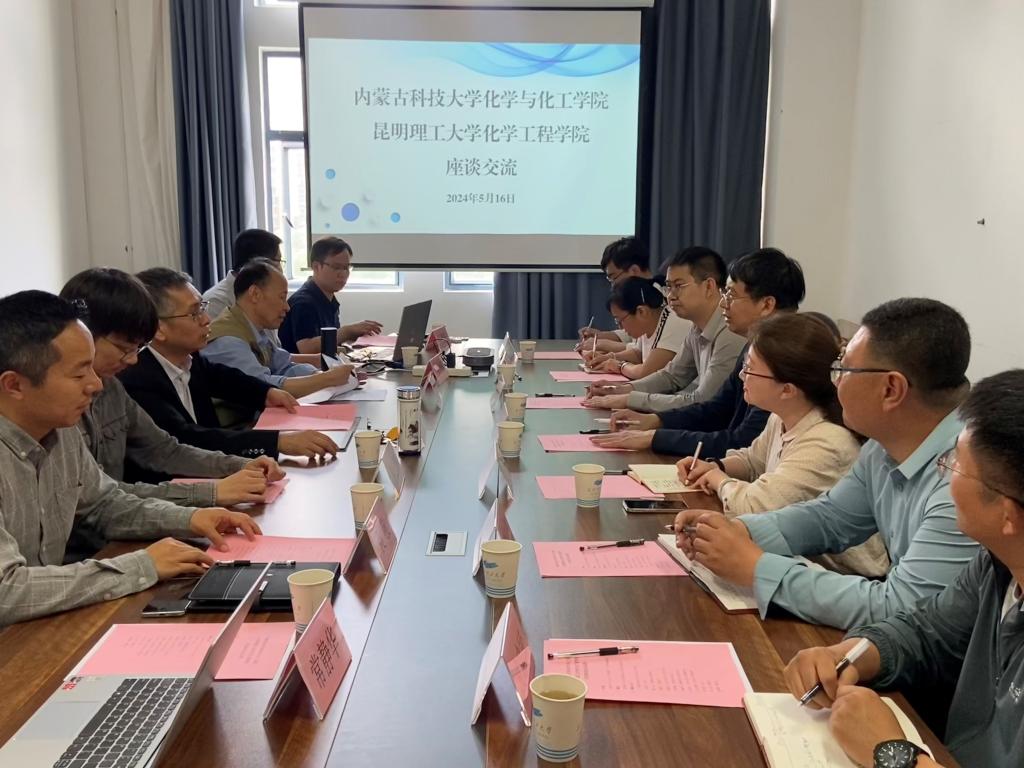 李松波院长介绍了内蒙古科技大学化学与星力 的发展情况、人才队伍、专业特色、科研方向。双方就学风建设、学生去向落实率和深造率、校企合作、基金项目申报质量、人才引育和考核体系、团队建设、职称评定、研究生招生等多方面的共同难点和问题进行了深入交流。