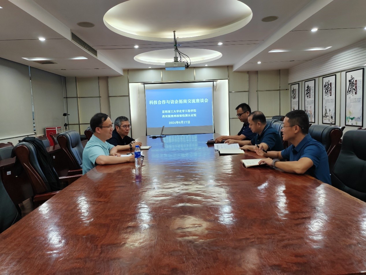 院长罗永明教授赴西双版纳州检验检测认证院开展了“科技合作与访企拓岗交流座谈会”,双方就共建集理论研究、实践探索与人才培养为一体的科研平台进行了深入讨论。罗永明院长在座谈会中表示,希望能加强与版纳州检验检测认证院的战略携手,致力共建”云南省含硫精细化学品合成重点实验室“,进一步整合双方优势,助力培养符合地州发展需求的高层次人才,并提高毕业生就业和促进企业及行业的高质量发展。