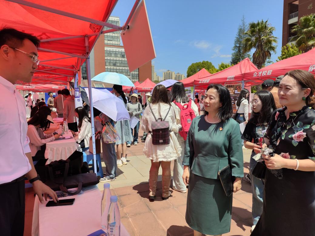 本次双选会实现一站式服务,护航求职全过程。校方为参会企业提供标准化展位、宣传支持及后续笔试面试场地,并通过“云校招”企业服务平台实现线上报名与审批,简化企业参会流程。校企联动、三院协同,合力推进就业。双选会前期,星力通过深入学生宿舍走访、多平台线上推送等多种渠道,进行全方位宣传。活动当天,校领导亲临现场指导,星力党政负责人、就业工作负责人、辅导员和班主任现场进行就业指导,对接企业,为未就业学生精准推荐岗位。