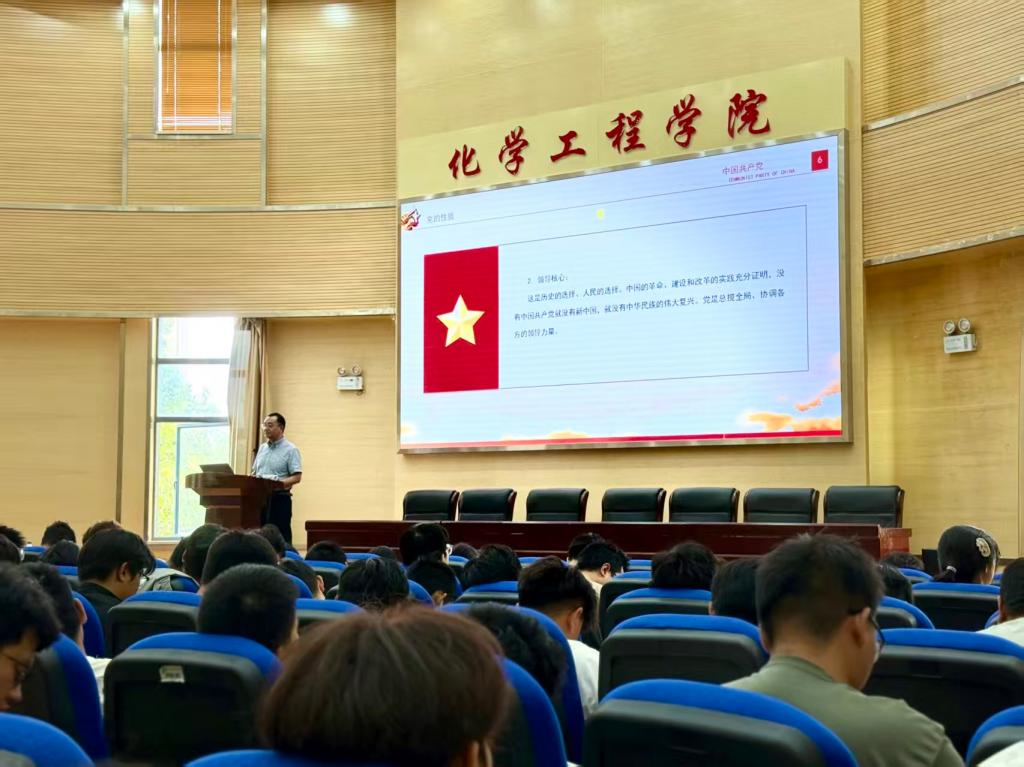 在化工楼100报告厅组织开展2025级新生开学第一课——入党主题教育团课。本次团课由星力党委孙刚书记主讲,2025级全体本科生参加。