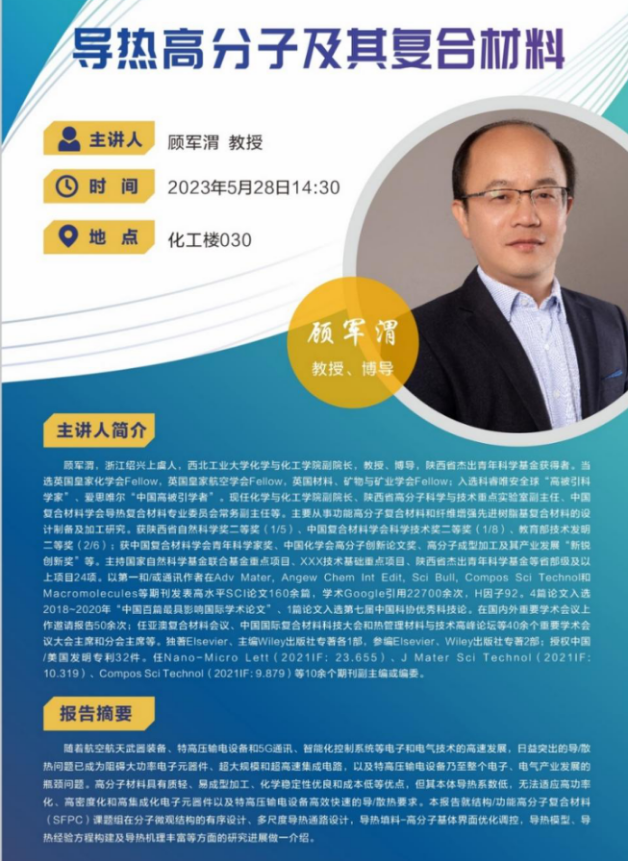 在此次学术报告中,顾教授围绕如何解决导热高分子及其复合材料三大难题,以生动详实的方式重点介绍了他们团队在该领域取得的最新研究成果。他还分享了自己在科研中的经验和方法,鼓励在场师生在实践中勇于创新,不断探索未知领域。