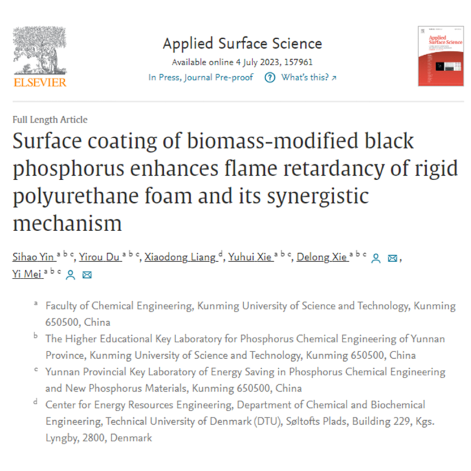 该研究成果以《生物质改性黑磷的表面涂层增强聚氨酯泡沫的阻燃性能及其协效机理》(Surface coating of biomass-modified black phosphorus enhances flame retardancy of rigid polyurethane foam and its synergistic mechanism)为题发表在期刊《Applied Surface Science》上。星力