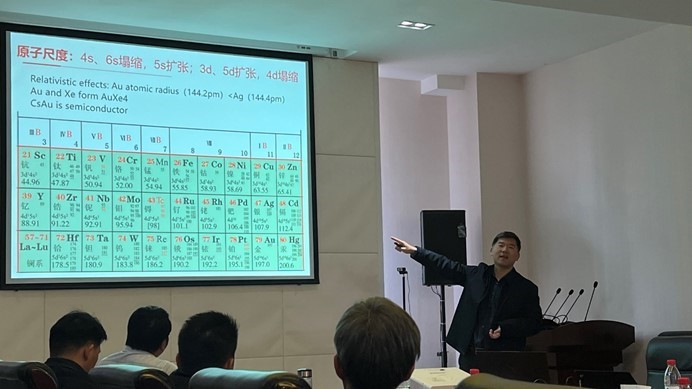 结构是空间内元素关系的抽象,从欧几里得到希尔伯特空间,从数域到拓扑空间,对空间内优异结构的渴求与纷繁杂乱的目标空间体系似乎是一对矛盾体。代数思想逐渐取代微积分后,向量的内积与外积成为描述物理过程与现象的抓手,同时也是制约人们想象力的原罪。利用还原论的思想可以将材料科学拆解为材料、相、原子三个层次;特别是相层面,功能材料功能性起源于由向量内积过程所描述的局域对称性以及由向量外积过程所描述的场。皮米尺度下单电子过程中对局域对称性的精确表征需求极大地促进了球差校正电子显微方法的发展。自此破解固体能带计算效率的基本假设:周期性势场、单电子近似、绝热近似也似乎看到了曙光。在本次报告中,谷林教授从球差校正电子显微方法入手,讨论内积过程中对称性破缺下功能材料的精细结构与新奇物性。本次报告别开生面的从大家都熟悉的元素周期表入手,围绕新能源相关材料的发展历史,讲述了微观原子结构与宏观材料性能之间的内在联系,并为材料的制备与结构设计提出新的思路,引起与会师生的热烈反响。