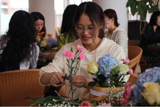 接下来,开展以“巾帼之花 美丽绽放”为主题的插花活动,星力邀请了拥有多年插花经验的花艺老师何昌荣老师,给大家讲授选花、裁剪、颜色搭配、造型等方面的插花技巧。