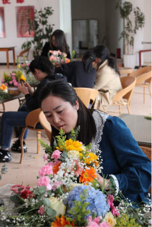 参加活动的老师们积极参与、虚心请教,认真完成自己的插花作品。一盆盆错落有致、娇艳盎然的鲜花展现在大家面前。